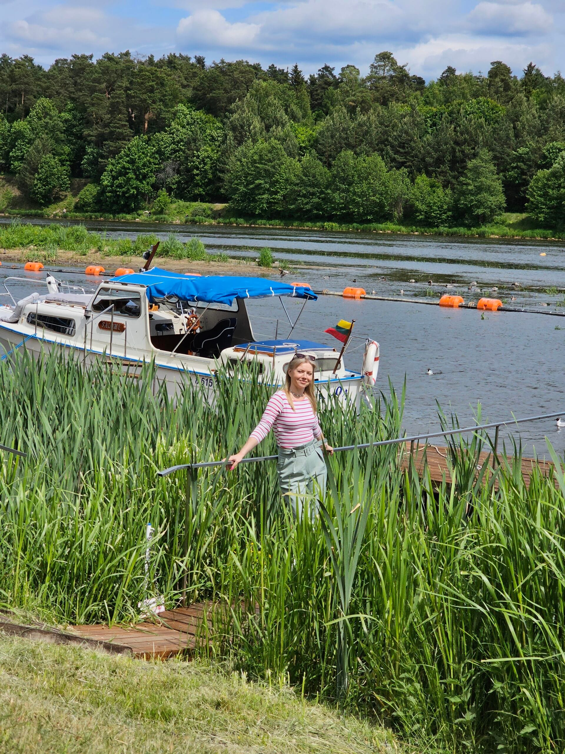 After strolling through the charming streets of Birštonas and logging over 5000 steps (by the way, my daily target is 8000 steps, what's yours?), we decided to indulge in a picturesque riverside snack along the warm banks of the Nemunas. There's something magical about sitting by the river with your family, soaking in the magnificent scenery, basking in the sun, and cherishing the time spent together on our journey.