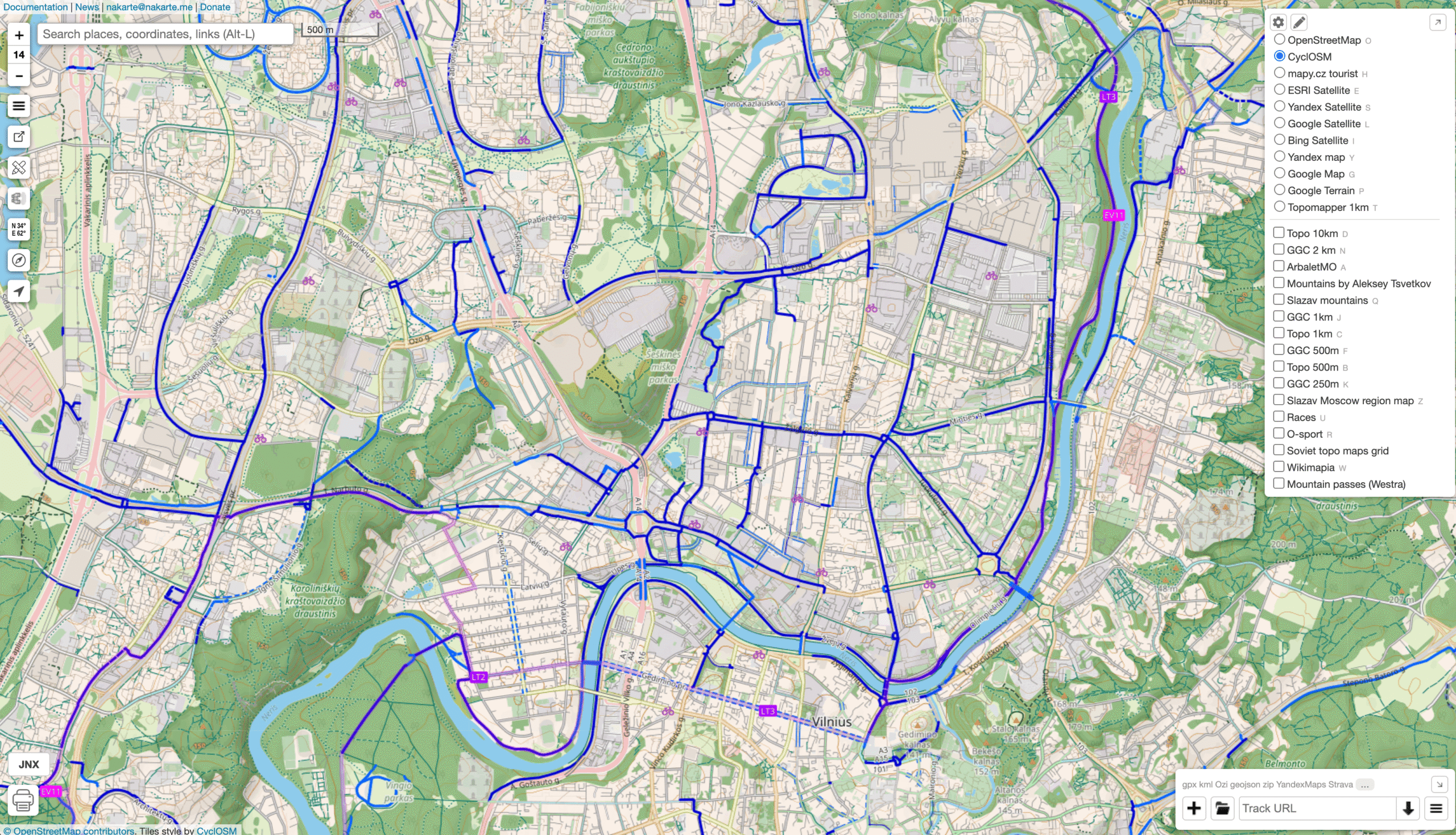 Nakarte.me is a powerful map tool for outdoor enthusiasts, especially cyclists and hikers. What makes it unique is the ability to overlay multiple map sources — from OpenCycleMap to satellite imagery — all in one interface. You can plan detailed routes, measure distances, add waypoints, and even export tracks for GPS devices. Clean, flexible, and ideal for deeper route planning.