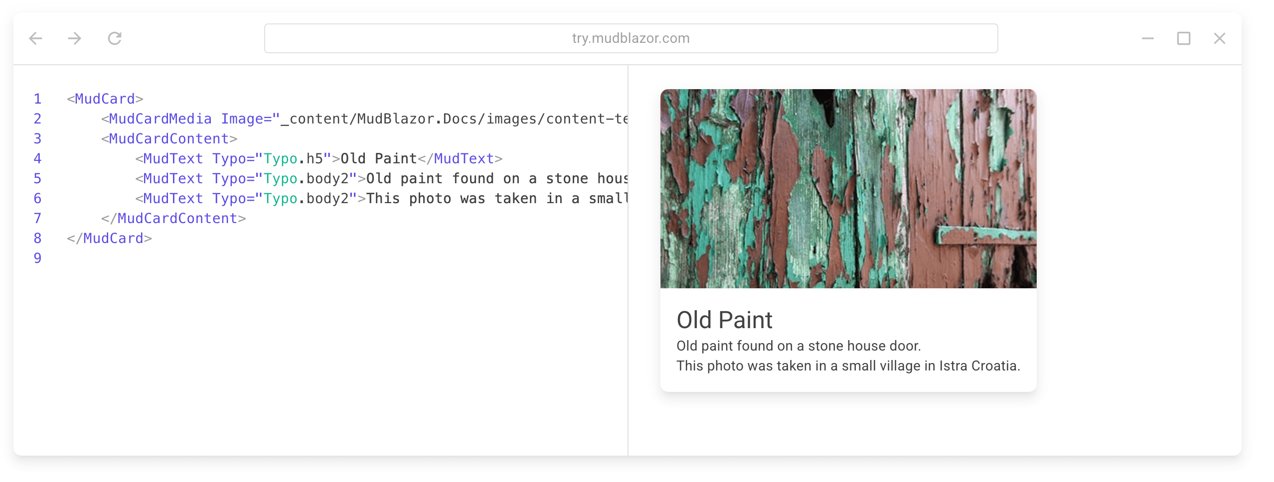 MudBlazor follows Material Design principles and provides aesthetic, lightweight, and responsive components.