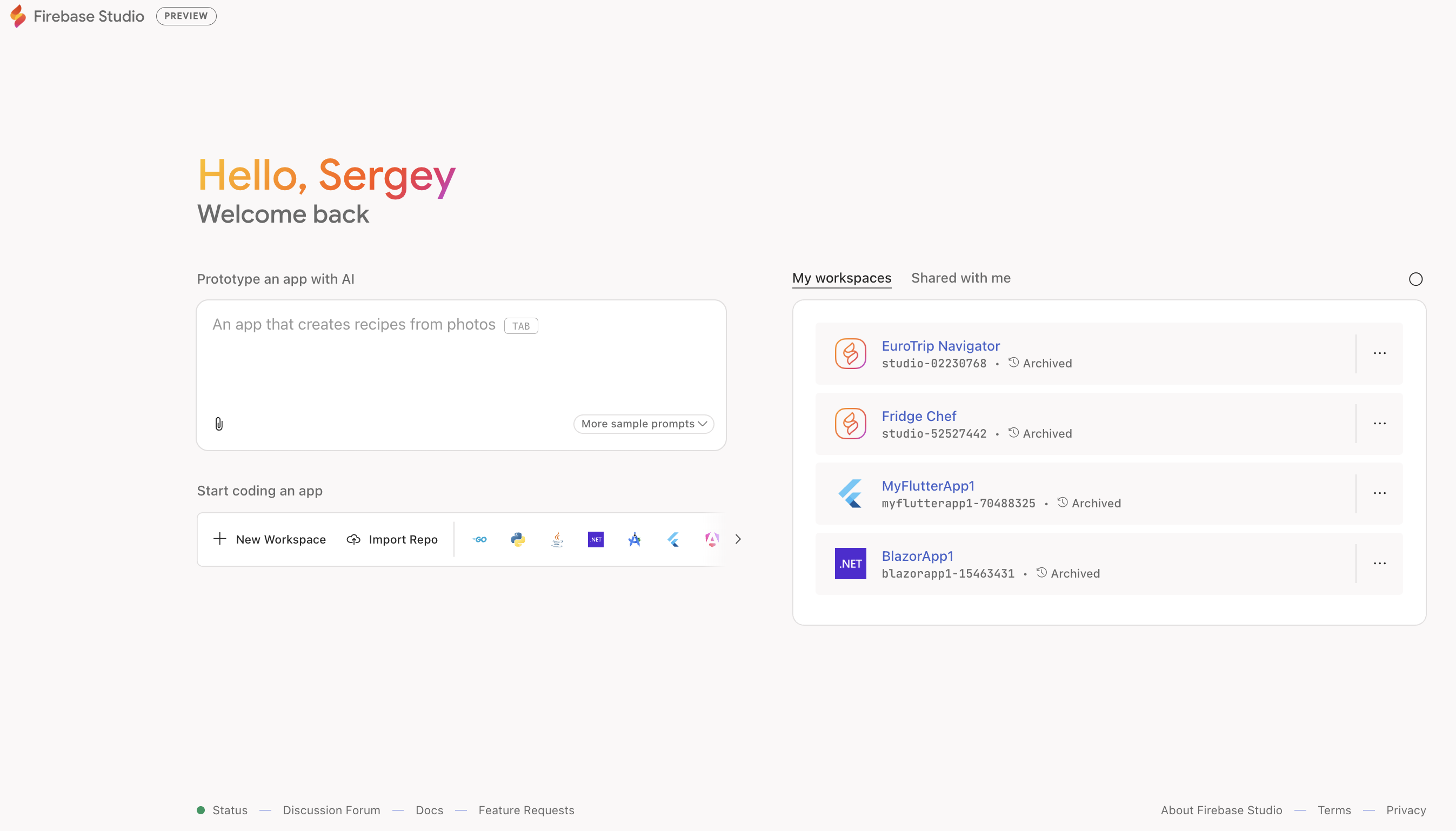 During its preview (as of 2024–2025), Firebase Studio is free to use. By default you get up to 3 workspaces at zero cost , meaning you can create three separate app projects without paying anything. Members of the Google Developer Program got higher limits (up to 30 workspaces) . The only costs you might incur are the usage of underlying Firebase services: Firebase’s Spark free tier covers quite a bit (e.g. a certain number of database reads, auth users, etc.), but if your MVP usage goes beyond those or uses services that have no free tier (like if you make a lot of AI calls to the Gemini model beyond free allowance, or you need to send tons of notifications), you would need to attach a billing account and pay per use . Essentially, Firebase Studio will auto-upgrade your project to the Blaze (pay-as-you-go) plan if necessary, at which point charges follow Firebase’s standard pricing for whatever you use (Firestore, FCM, etc.). For a typical small MVP with few users, the costs are likely negligible and within free quotas. The AI generation itself (Gemini model) currently doesn’t cost the user separately while it’s in preview – Google is footing that bill, but that could change once out of preview or if heavy usage is detected. There’s no separate licensing fee for the tool; it’s part of Firebase. You own the generated code, though it’s somewhat coupled with Firebase services (e.g., a Firestore-centric app might need refactoring to run on a different backend). One should note that if Firebase Studio remains free, it’s a very cost-effective option. Even when billing is enabled, Firebase’s pricing is friendly to low-volume prototypes (for instance, hosting and Firestore have free allocations each month). In short, Firebase Studio is essentially free to start, and costs scale with your app’s usage – you pay for what you use on Firebase, with no upfront fees. This makes it attractive for budget-conscious founders. Just be cautious to monitor usage if your app unexpectedly takes off, as beyond-free usage will incur charges (though for an MVP scale, that’s rarely a big concern).