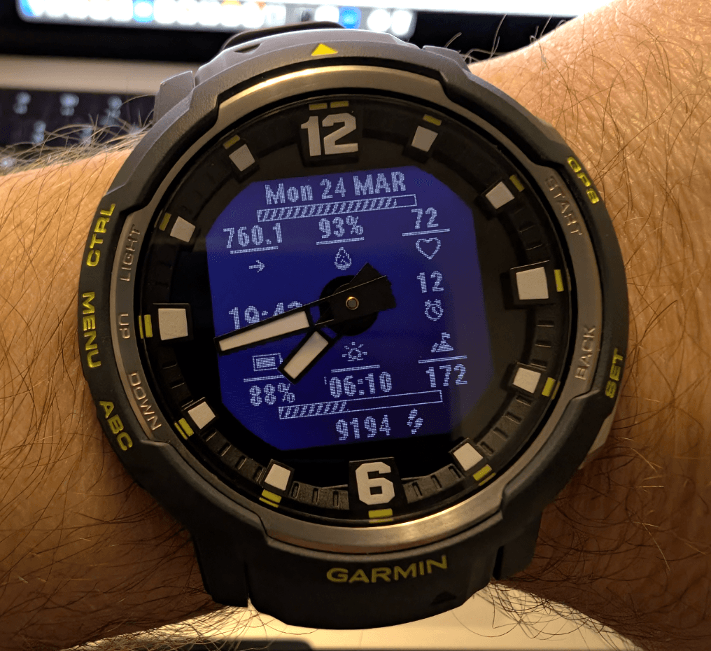 If you're a fan of military-inspired designs, Instinct Mission brings a tactical, high-contrast aesthetic with easy-to-read elements. Perfect for outdoor enthusiasts, hikers, and anyone who loves the Garmin Instinct style.